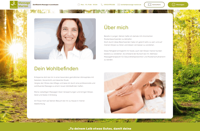 Von der Konzeption, über die Entwicklung und dem Hosting habe ich für Massage Marion alles betreut.